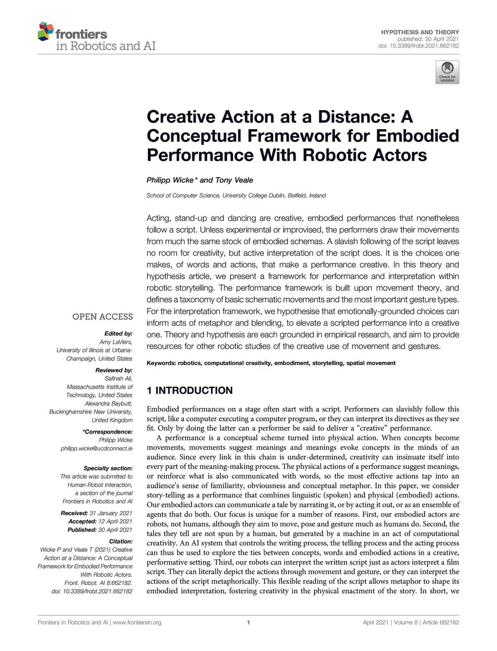 Creative Action at a Distance: A Conceptual Framework for Embodied
