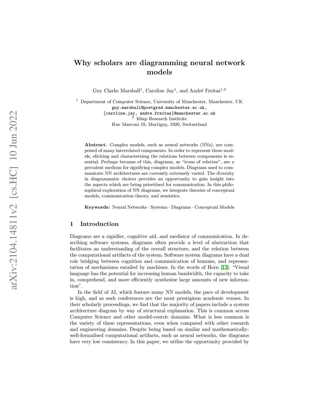 Complex models, such as neural networks (NNs), are comprised of many interrelated components. In order to represent these models, eliciting and characterising the relations between components is essential. Perhaps because of this, diagrams, as "icons of relation", are a prevalent medium for signifying complex models. Diagrams used to communicate NN architectures are currently extremely varied. The diversity in diagrammatic choices provides an opportunity to gain insight into the aspects which are being prioritised for communication. In this philosophical exploration of NN diagrams, we integrate theories of conceptual models, communication theory, and semiotics.