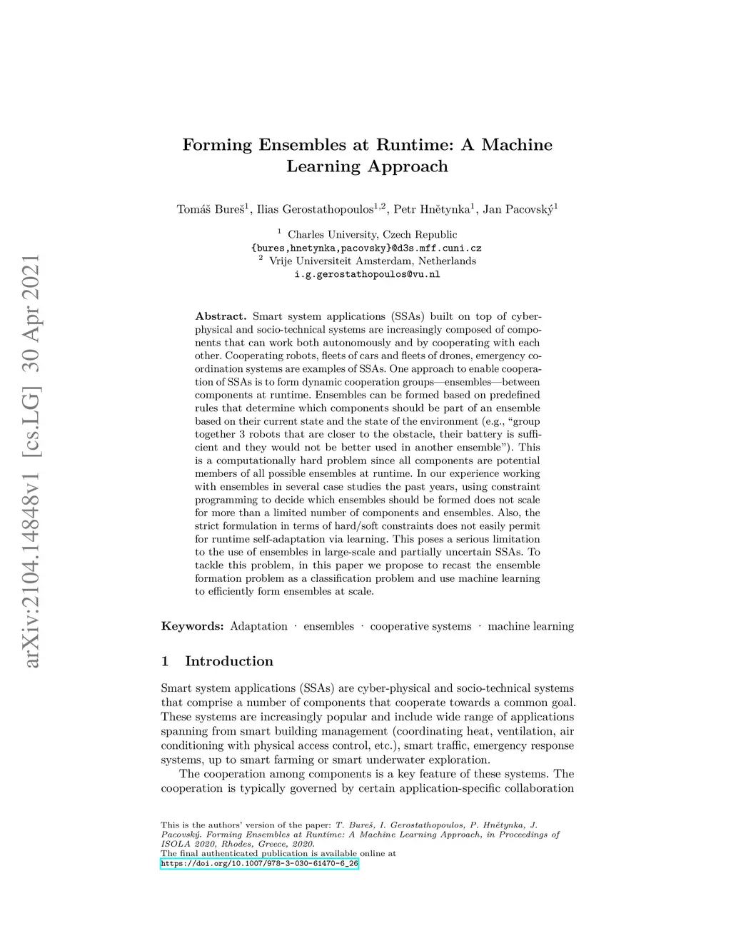 Forming Ensembles at Runtime: A Machine Learning Approach