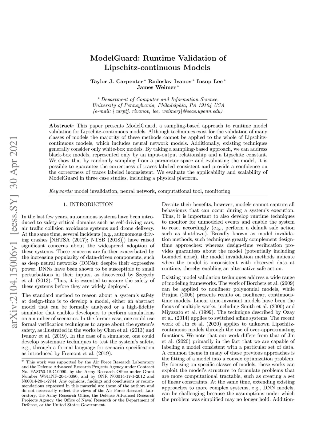 ModelGuard: Runtime Validation of Lipschitz-continuous Models