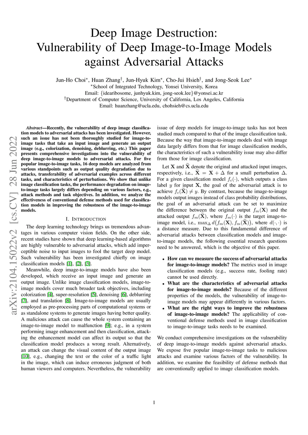 Deep Image Destruction: Vulnerability of Deep Image-to-Image Models
