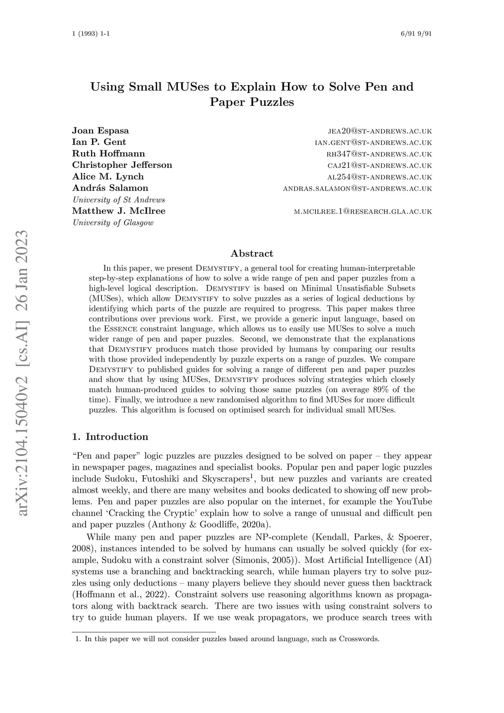 In this paper, we present Demystify, a general tool for creating human-interpretable step-by-step explanations of how to solve a wide range of pen and paper puzzles from a high-level logical description. Demystify is based on Minimal Unsatisfiable Subsets (MUSes), which allow Demystify to solve puzzles as a series of logical deductions by identifying which parts of the puzzle are required to progress. This paper makes three contributions over previous work. First, we provide a generic input language, based on the Essence constraint language, which allows us to easily use MUSes to solve a much wider range of pen and paper puzzles. Second, we demonstrate that the explanations that Demystify produces match those provided by humans by comparing our results with those provided independently by puzzle experts on a range of puzzles. We compare Demystify to published guides for solving a range of different pen and paper puzzles and show that by using MUSes, Demystify produces solving strategies which closely match human-produced guides to solving those same puzzles (on average 89% of the time). Finally, we introduce a new randomised algorithm to find MUSes for more difficult puzzles. This algorithm is focused on optimised search for individual small MUSes.