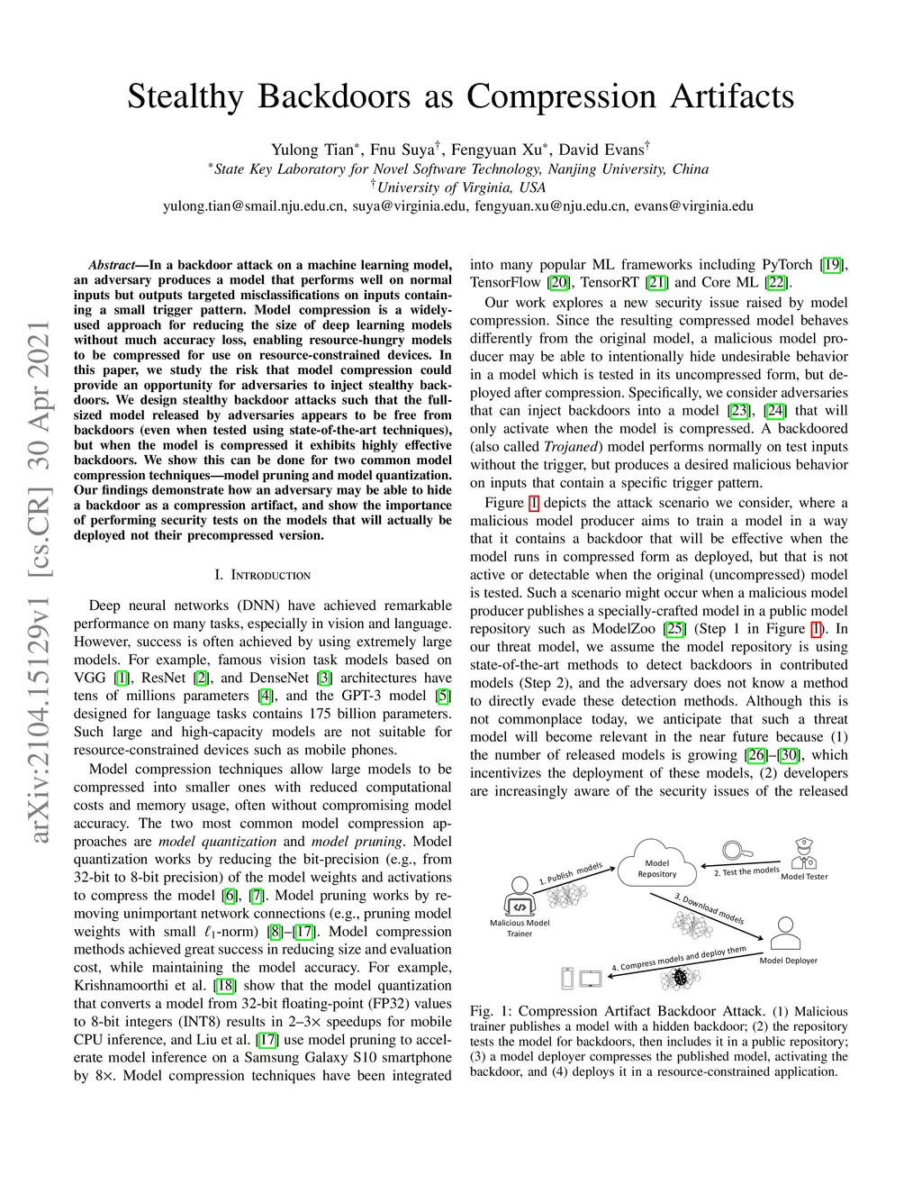 In a backdoor attack on a machine learning model, an adversary produces a model that performs well on normal inputs but outputs targeted misclassifications on inputs containing a small trigger pattern. Model compression is a widely-used approach for reducing the size of deep learning models without much accuracy loss, enabling resource-hungry models to be compressed for use on resource-constrained devices. In this paper, we study the risk that model compression could provide an opportunity for adversaries to inject stealthy backdoors. We design stealthy backdoor attacks such that the full-sized model released by adversaries appears to be free from backdoors (even when tested using state-of-the-art techniques), but when the model is compressed it exhibits highly effective backdoors. We show this can be done for two common model compression techniques -- model pruning and model quantization. Our findings demonstrate how an adversary may be able to hide a backdoor as a compression artifact, and show the importance of performing security tests on the models that will actually be deployed not their precompressed version.