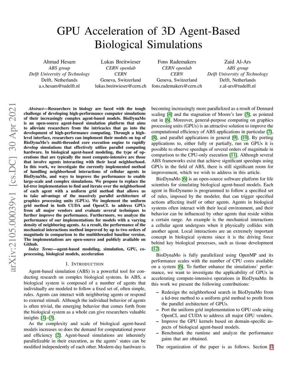 GPU Acceleration of 3D Agent-Based Biological Simulations