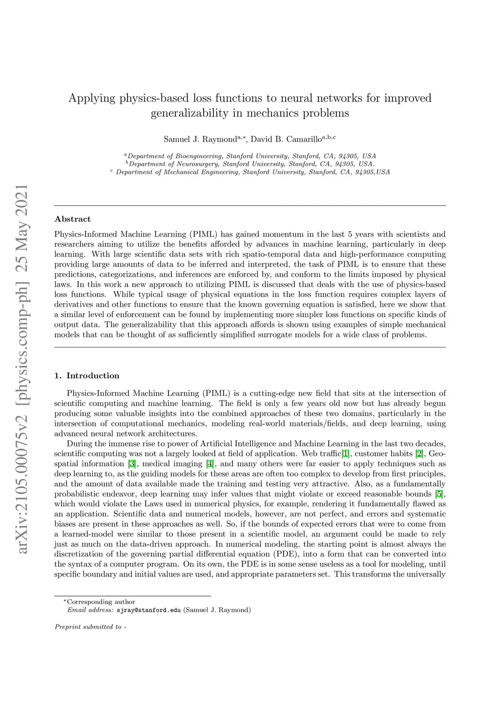 Physics-Informed Machine Learning (PIML) has gained momentum in the last 5 years with scientists and researchers aiming to utilize the benefits afforded by advances in machine learning, particularly in deep learning. With large scientific data sets with rich spatio-temporal data and high-performance computing providing large amounts of data to be inferred and interpreted, the task of PIML is to ensure that these predictions, categorizations, and inferences are enforced by, and conform to the limits imposed by physical laws. In this work a new approach to utilizing PIML is discussed that deals with the use of physics-based loss functions. While typical usage of physical equations in the loss function requires complex layers of derivatives and other functions to ensure that the known governing equation is satisfied, here we show that a similar level of enforcement can be found by implementing more simpler loss functions on specific kinds of output data. The generalizability that this approach affords is shown using examples of simple mechanical models that can be thought of as sufficiently simplified surrogate models for a wide class of problems.
