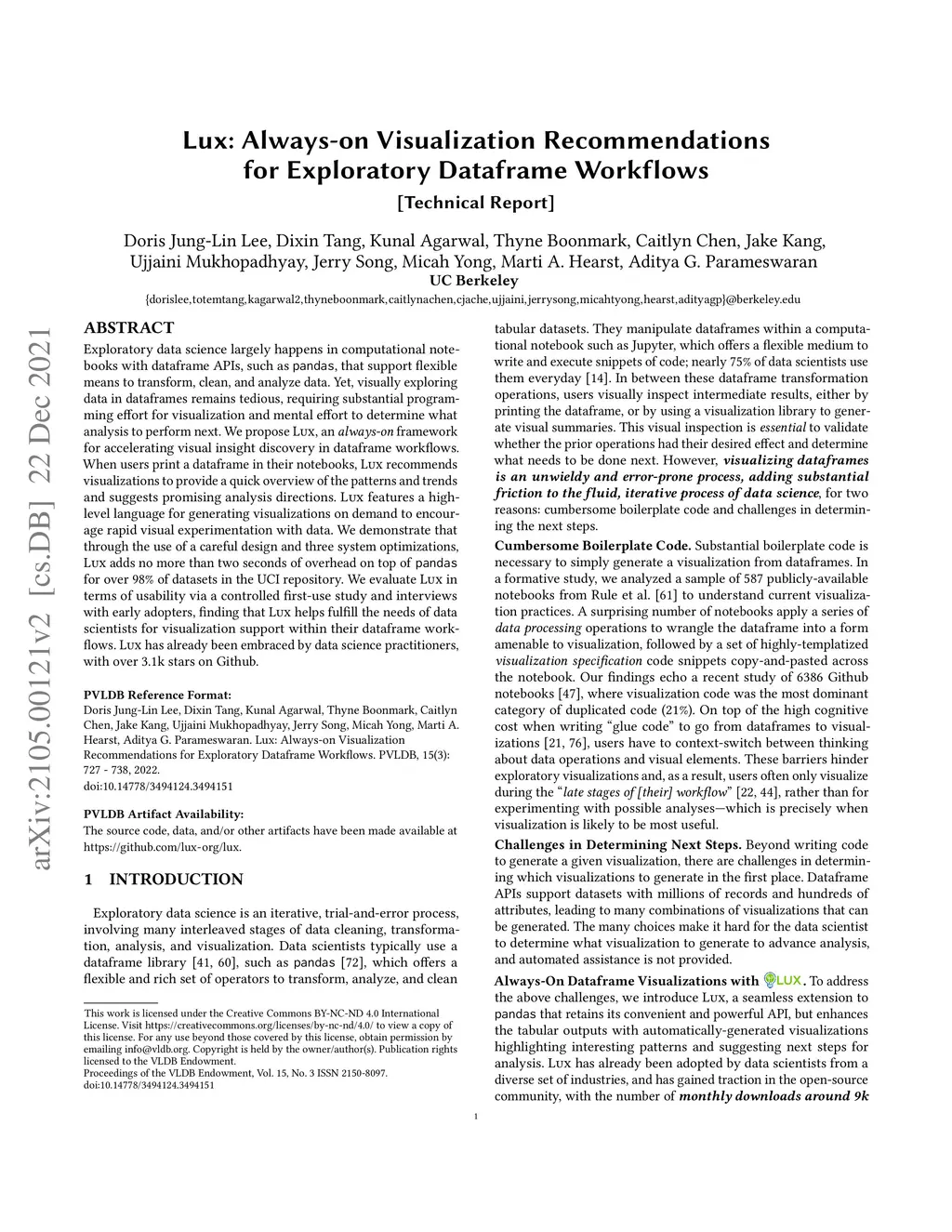 Lux: Always-on Visualization Recommendations for Exploratory Dataframe
