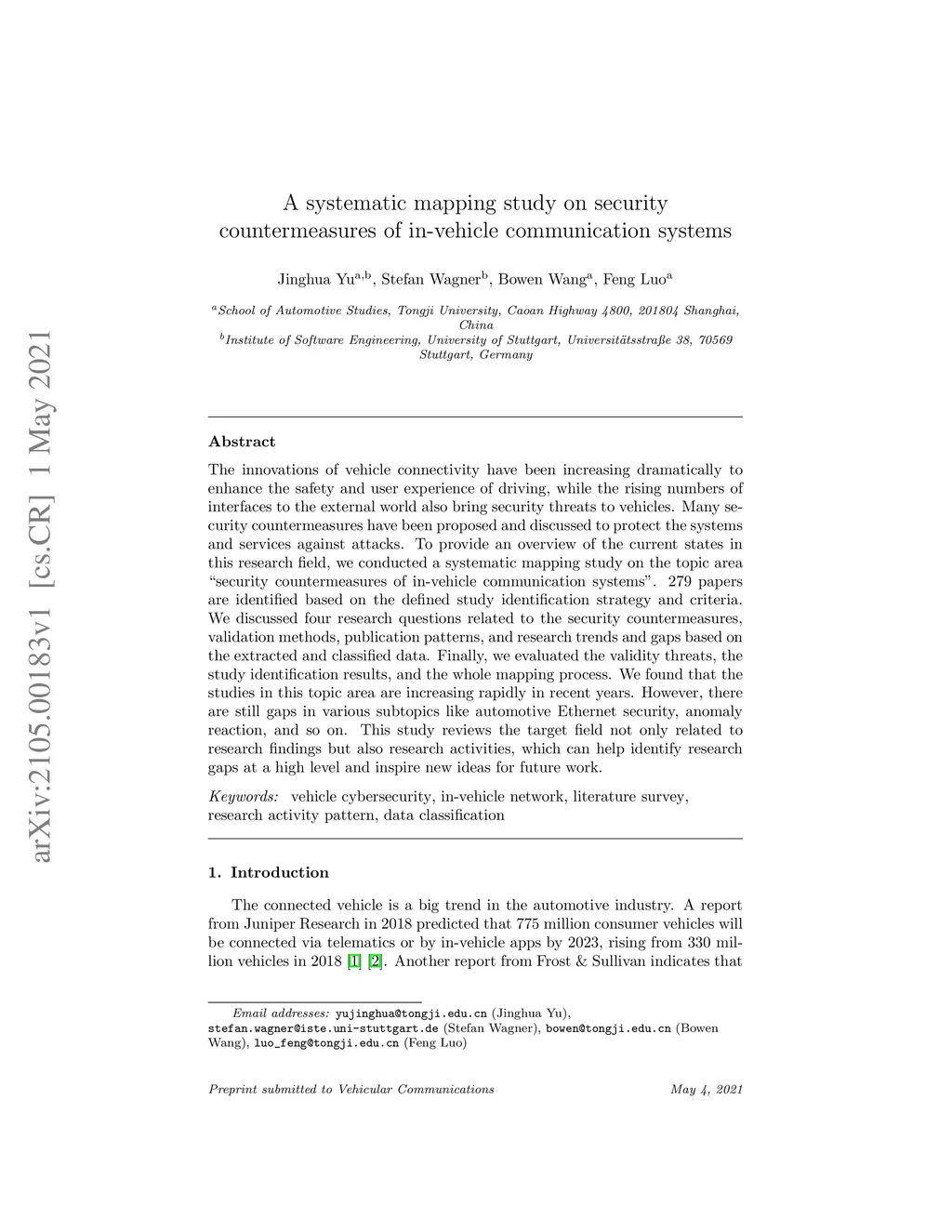 A systematic mapping study on security countermeasures of in-vehicle