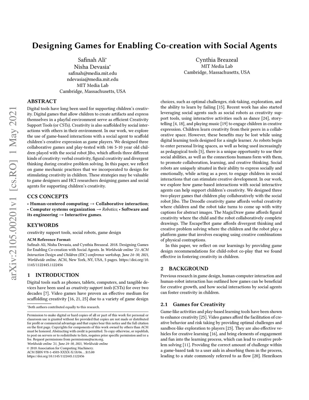 Digital tools have long been used for supporting children's creativity. Digital games that allow children to create artifacts and express themselves in a playful environment serve as efficient Creativity Support Tools (or CSTs). Creativity is also scaffolded by social interactions with others in their environment. In our work, we explore the use of game-based interactions with a social agent to scaffold children's creative expression as game players. We designed three collaborative games and play-tested with 146 5-10 year old children played with the social robot Jibo, which affords three different kinds of creativity: verbal creativity, figural creativity and divergent thinking during creative problem solving. In this paper, we reflect on game mechanic practices that we incorporated to design for stimulating creativity in children. These strategies may be valuable to game designers and HCI researchers designing games and social agents for supporting children's creativity.