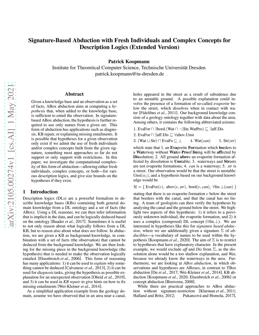Signature-Based Abduction with Fresh Individuals and Complex Concepts