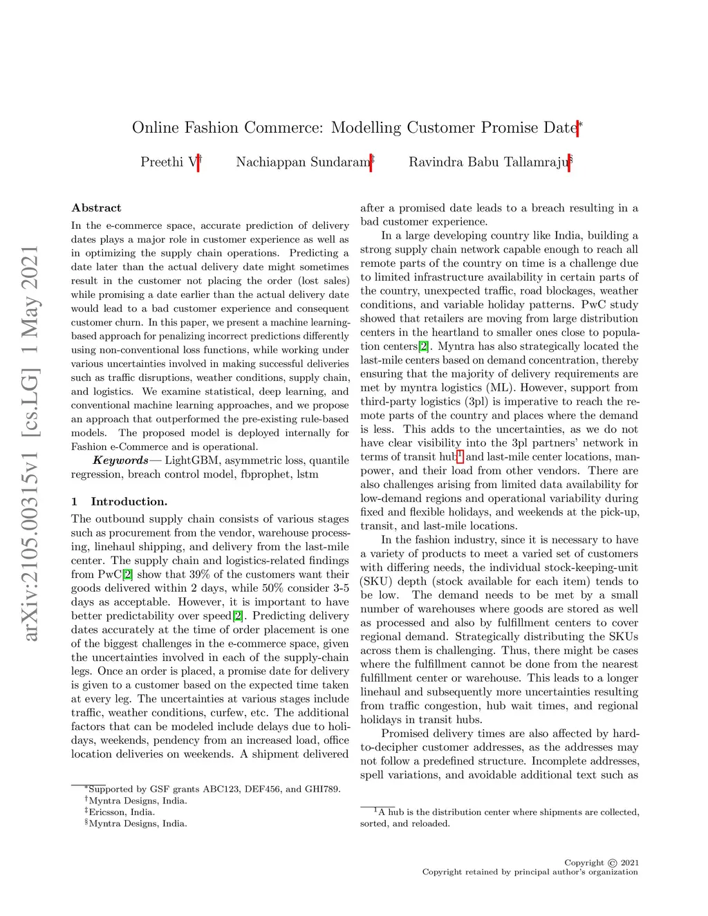 Online Fashion Commerce: Modelling Customer Promise Date