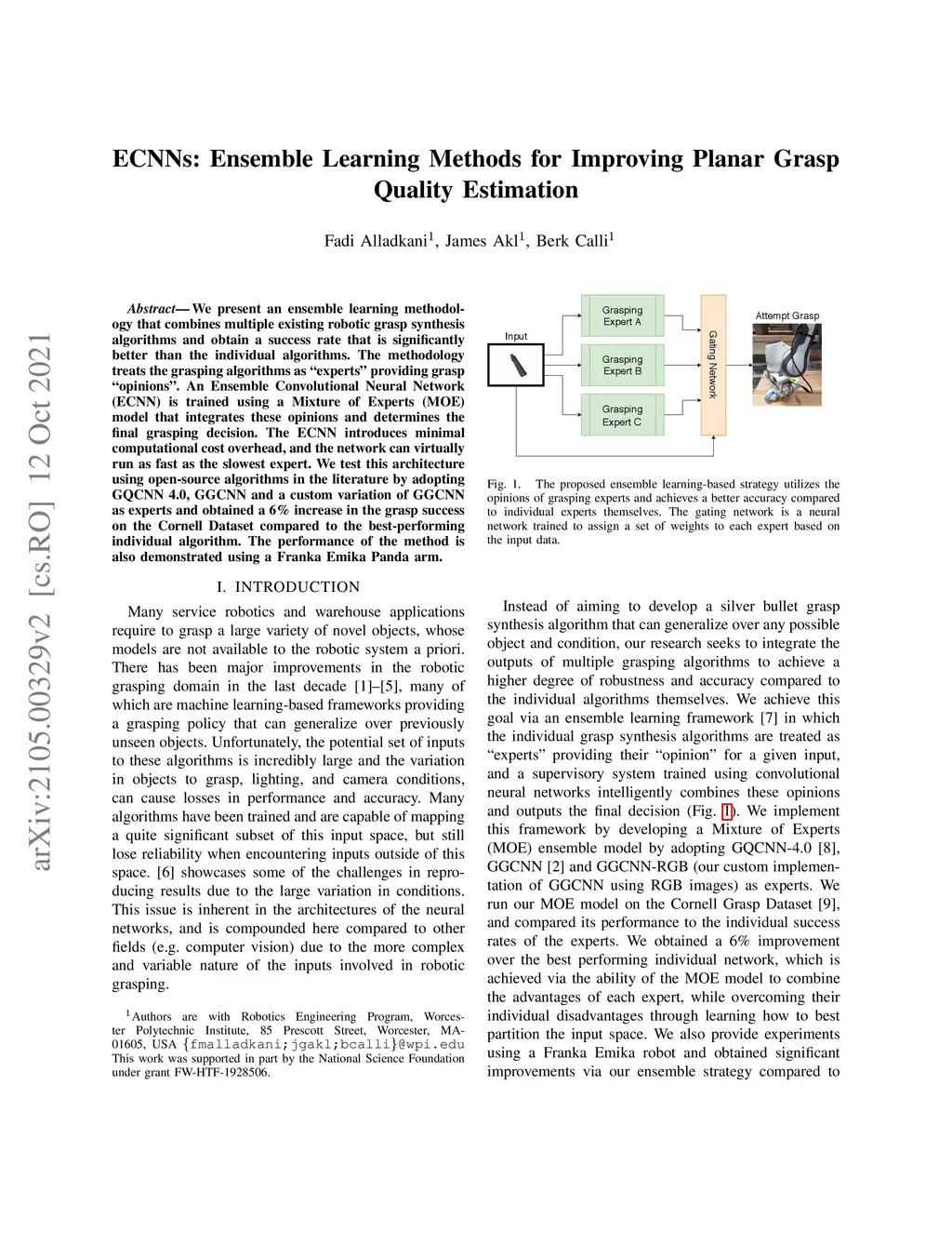 ECNNs: Ensemble Learning Methods for Improving Planar Grasp Quality