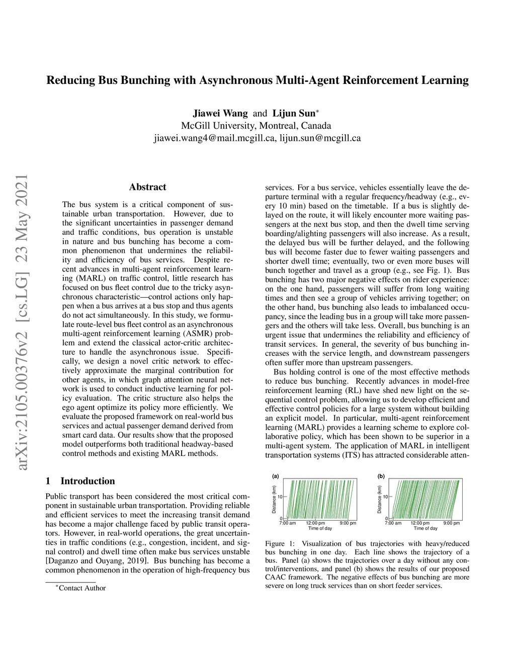 Reducing Bus Bunching with Asynchronous Multi-Agent Reinforcement