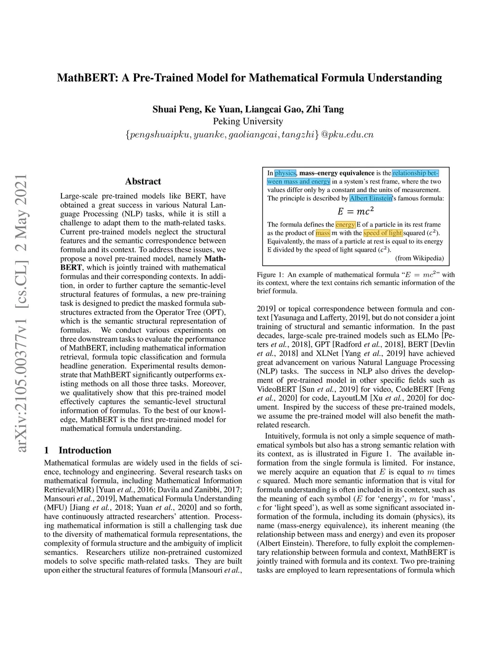MathBERT: A Pre-Trained Model for Mathematical Formula Understanding