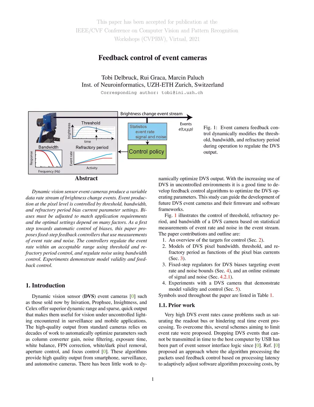 Dynamic vision sensor event cameras produce a variable data rate stream of brightness change events. Event production at the pixel level is controlled by threshold, bandwidth, and refractory period bias current parameter settings. Biases must be adjusted to match application requirements and the optimal settings depend on many factors. As a first step towards automatic control of biases, this paper proposes fixed-step feedback controllers that use measurements of event rate and noise. The controllers regulate the event rate within an acceptable range using threshold and refractory period control, and regulate noise using bandwidth control. Experiments demonstrate model validity and feedback control.