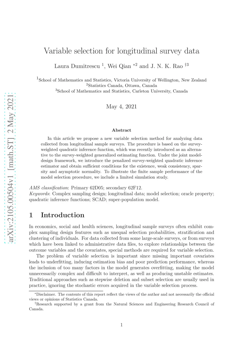 In this article we propose a new variable selection method for analyzing data collected from longitudinal sample surveys. The procedure is based on the survey-weighted quadratic inference function, which was recently introduced as an alternative to the survey-weighted generalized estimating function. Under the joint model-design framework, we introduce the penalized survey-weighted quadratic inference estimator and obtain sufficient conditions for the existence, weak consistency, sparsity and asymptotic normality. To illustrate the finite sample performance of the model selection procedure, we include a limited simulation study.