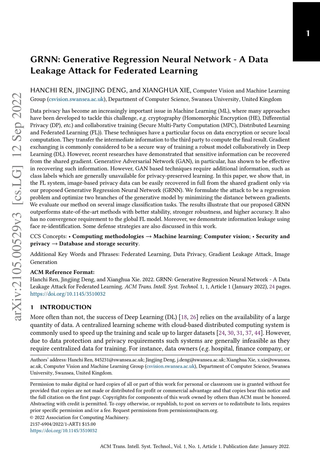 GRNN: Generative Regression Neural Network -- A Data Leakage Attack for