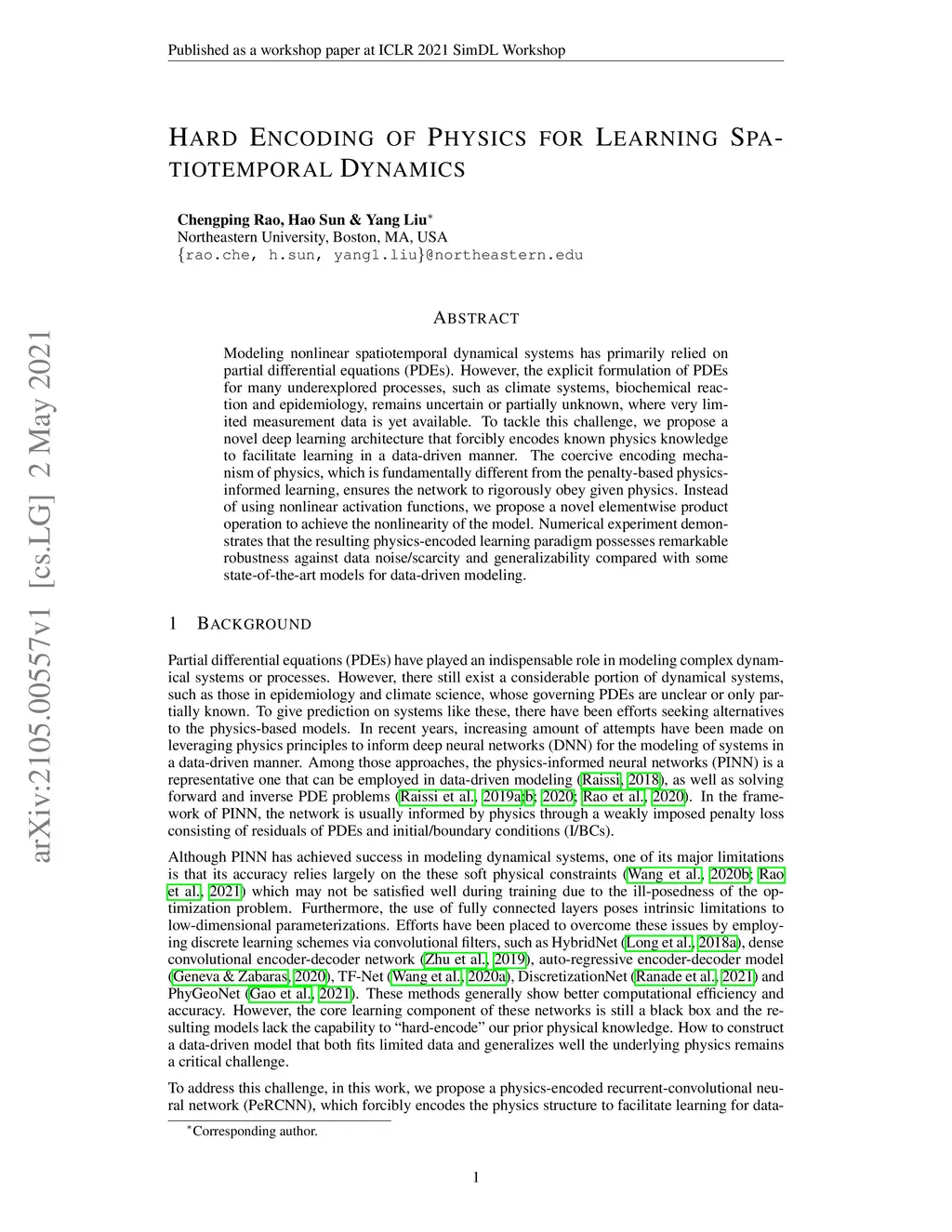 Hard Encoding of Physics for Learning Spatiotemporal Dynamics