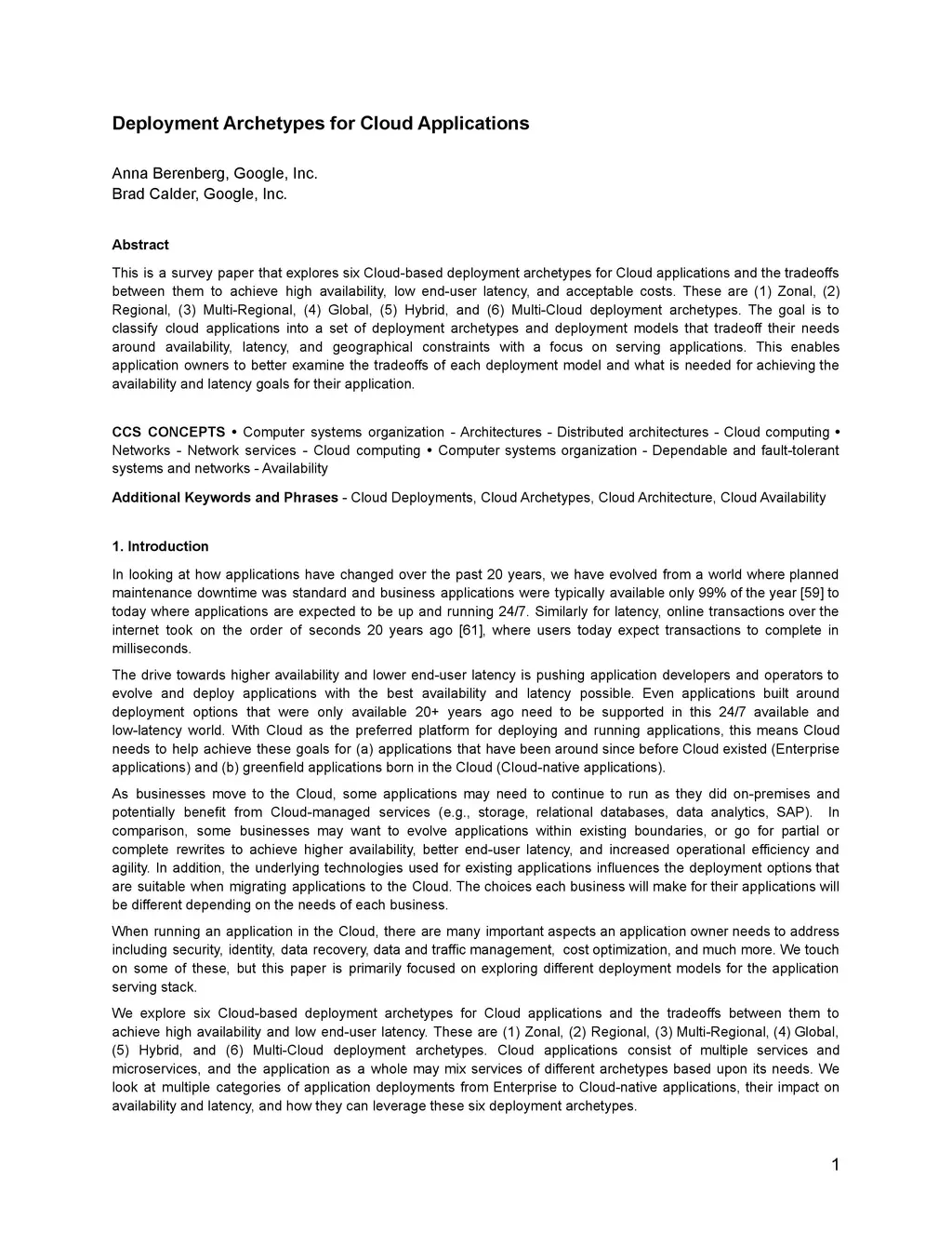 This is a survey paper that explores six Cloud-based deployment archetypes for Cloud applications and the tradeoffs between them to achieve high availability, low end-user latency, and acceptable costs. These are (1) Zonal, (2) Regional, (3) Multi-Regional, (4) Global, (5) Hybrid, and (6) Multi-Cloud deployment archetypes. The goal is to classify cloud applications into a set of deployment archetypes and deployment models that tradeoff their needs around availability, latency, and geographical constraints with a focus on serving applications. This enables application owners to better examine the tradeoffs of each deployment model and what is needed for achieving the availability and latency goals for their application.