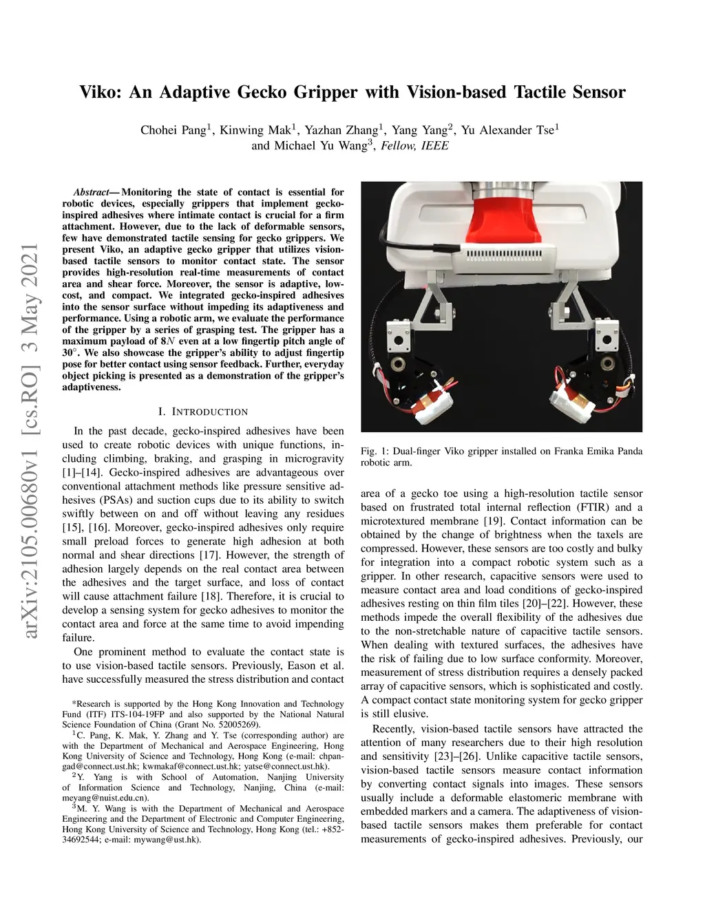 Viko: An Adaptive Gecko Gripper with Vision-based Tactile Sensor