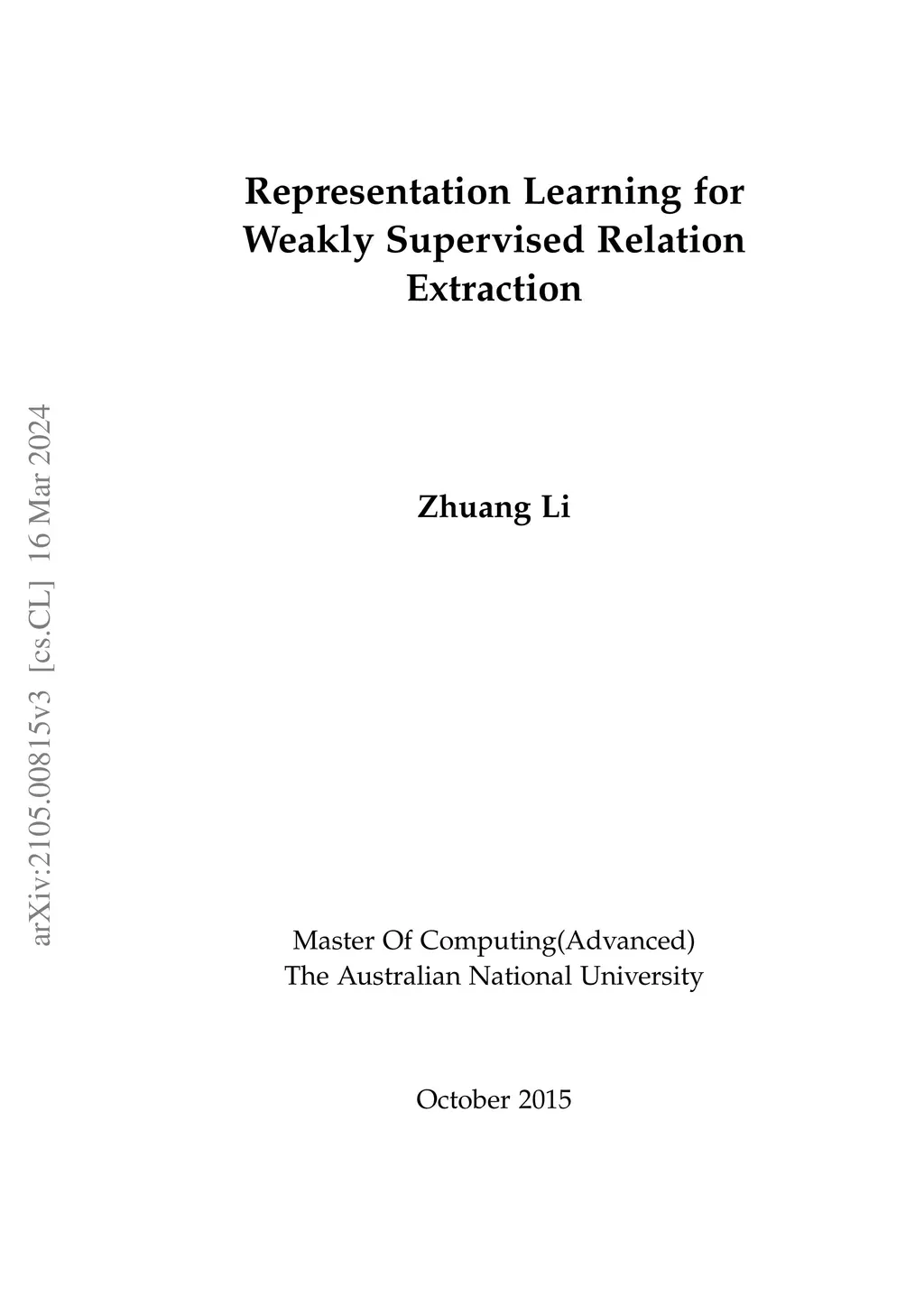 Representation Learning for Weakly Supervised Relation Extraction