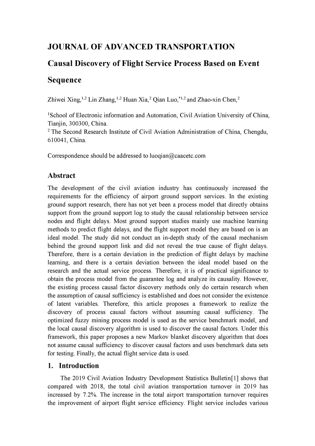 Causal Discovery of Flight Service Process Based on Event Sequence
