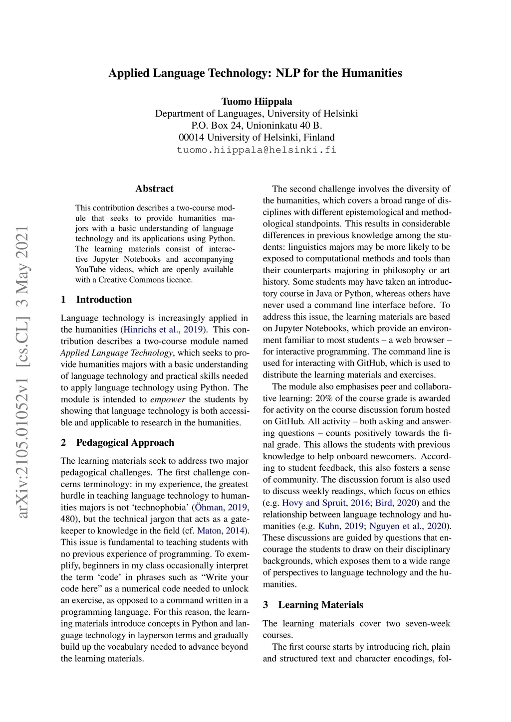 Applied Language Technology: NLP for the Humanities