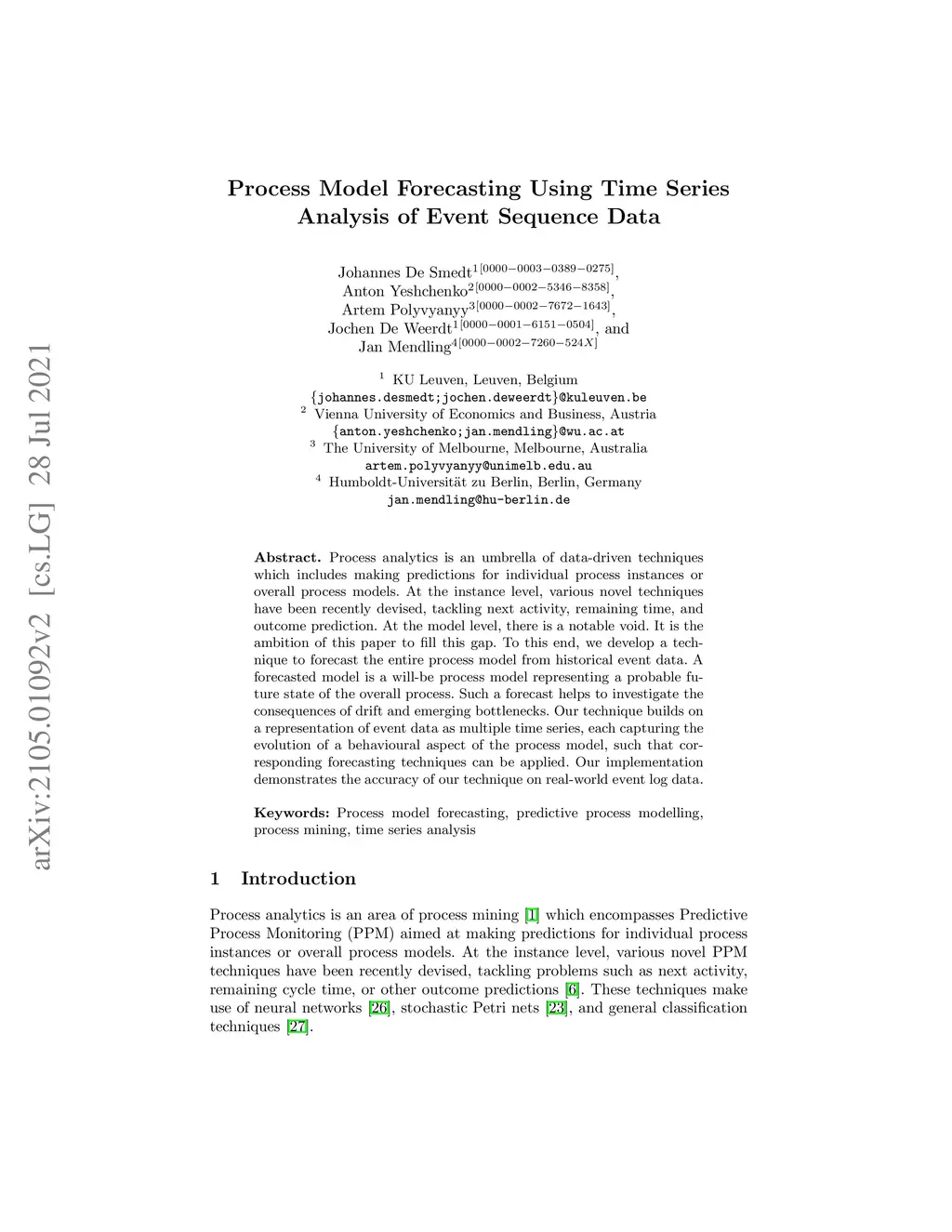 Process Model Forecasting Using Time Series Analysis of Event Sequence