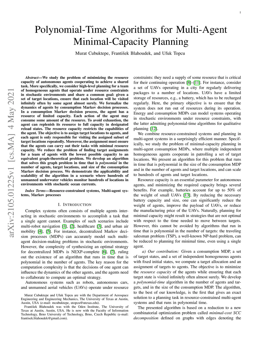 Polynomial-Time Algorithms for Multi-Agent Minimal-Capacity Planning