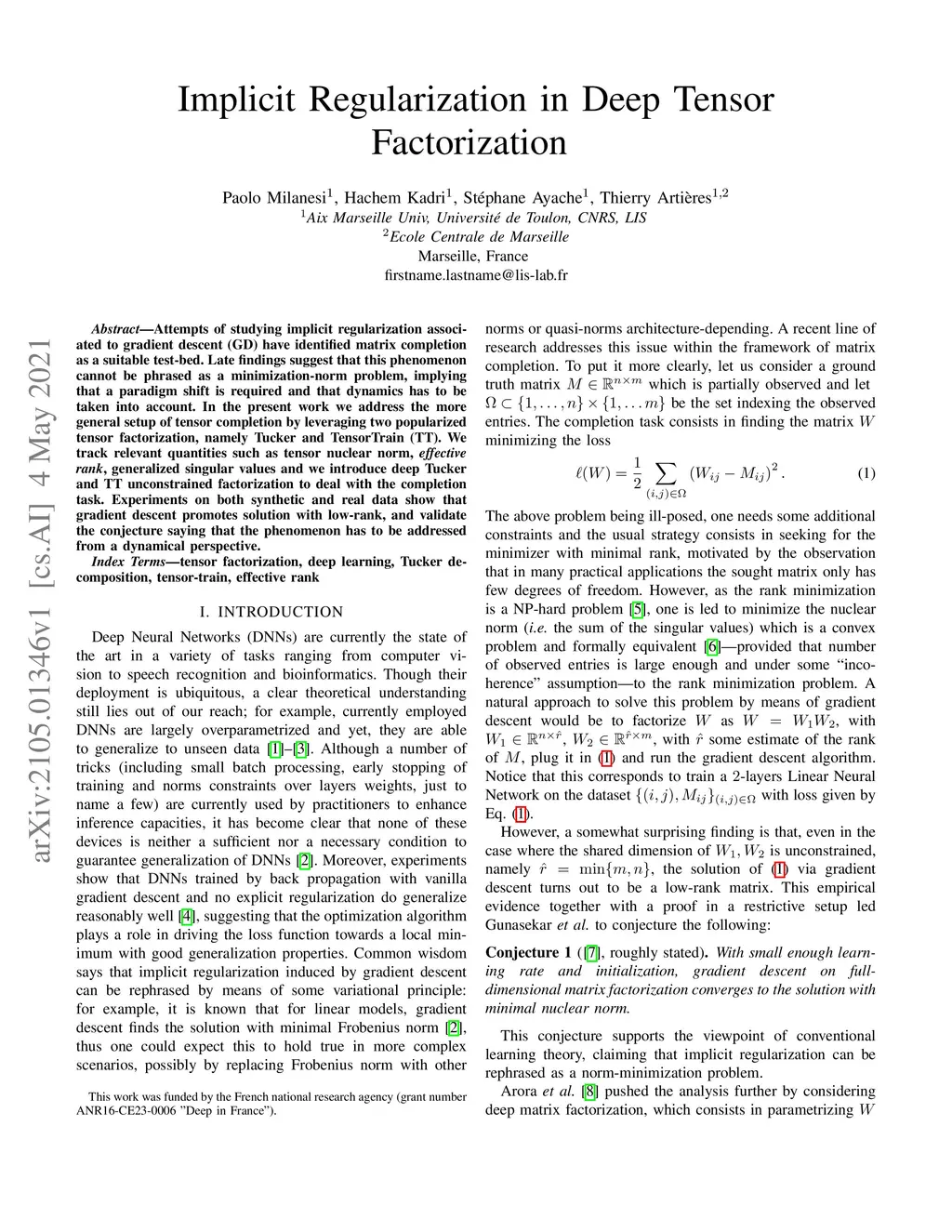 Attempts of studying implicit regularization associated to gradient descent (GD) have identified matrix completion as a suitable test-bed. Late findings suggest that this phenomenon cannot be phrased as a minimization-norm problem, implying that a paradigm shift is required and that dynamics has to be taken into account. In the present work we address the more general setup of tensor completion by leveraging two popularized tensor factorization, namely Tucker and TensorTrain (TT). We track relevant quantities such as tensor nuclear norm, effective rank, generalized singular values and we introduce deep Tucker and TT unconstrained factorization to deal with the completion task. Experiments on both synthetic and real data show that gradient descent promotes solution with low-rank, and validate the conjecture saying that the phenomenon has to be addressed from a dynamical perspective.