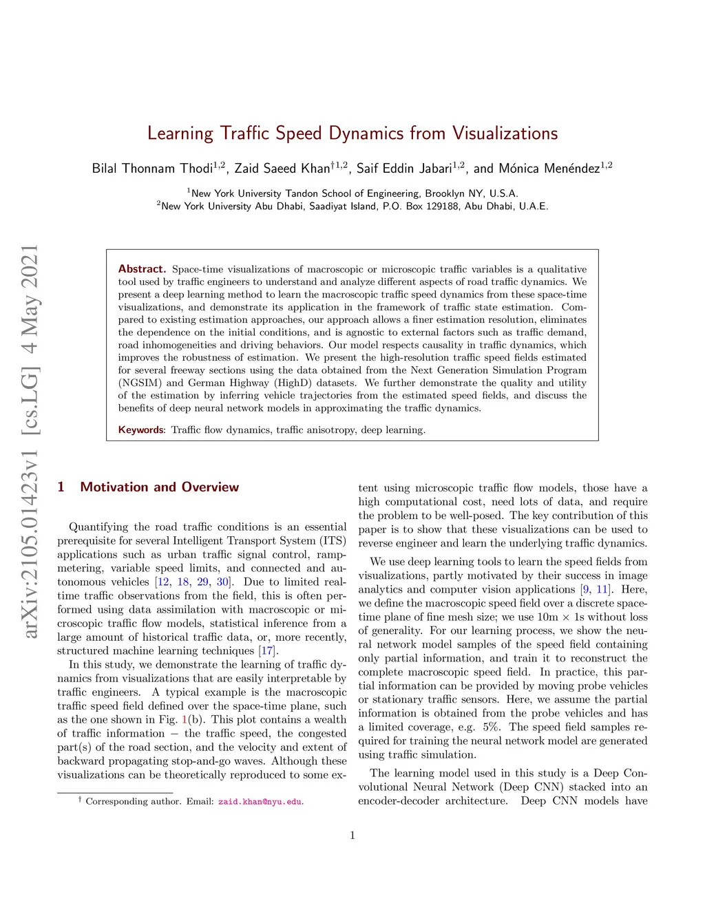 Space-time visualizations of macroscopic or microscopic traffic variables is a qualitative tool used by traffic engineers to understand and analyze different aspects of road traffic dynamics. We present a deep learning method to learn the macroscopic traffic speed dynamics from these space-time visualizations, and demonstrate its application in the framework of traffic state estimation. Compared to existing estimation approaches, our approach allows a finer estimation resolution, eliminates the dependence on the initial conditions, and is agnostic to external factors such as traffic demand, road inhomogeneities and driving behaviors. Our model respects causality in traffic dynamics, which improves the robustness of estimation. We present the high-resolution traffic speed fields estimated for several freeway sections using the data obtained from the Next Generation Simulation Program (NGSIM) and German Highway (HighD) datasets. We further demonstrate the quality and utility of the estimation by inferring vehicle trajectories from the estimated speed fields, and discuss the benefits of deep neural network models in approximating the traffic dynamics.