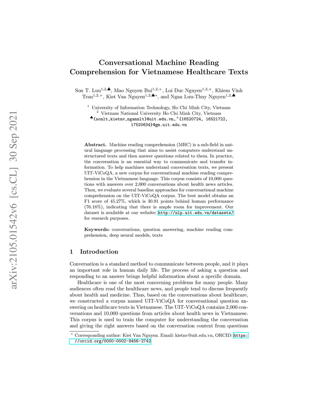 Conversational Machine Reading Comprehension for Vietnamese Healthcare
