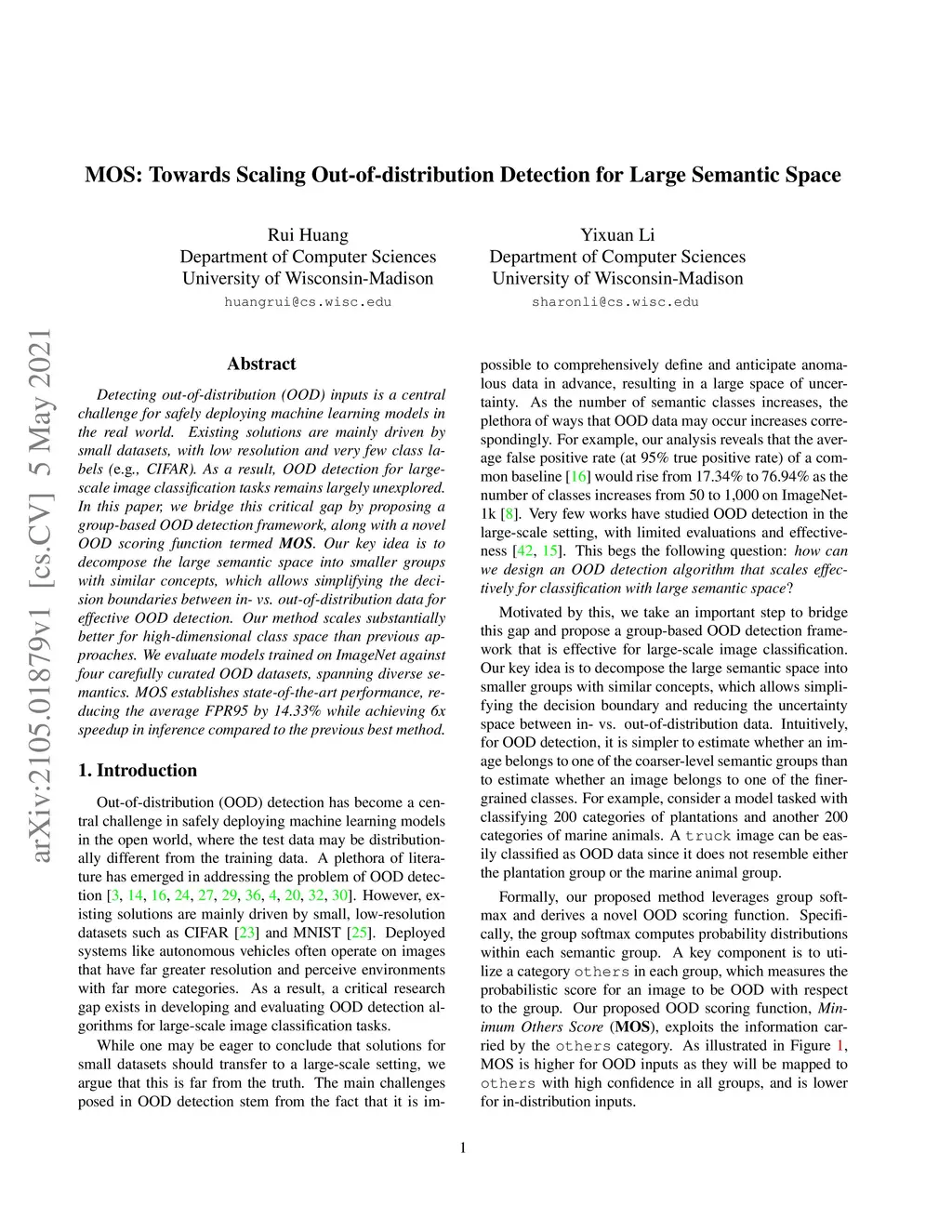 MOS: Towards Scaling Out-of-distribution Detection for Large Semantic
