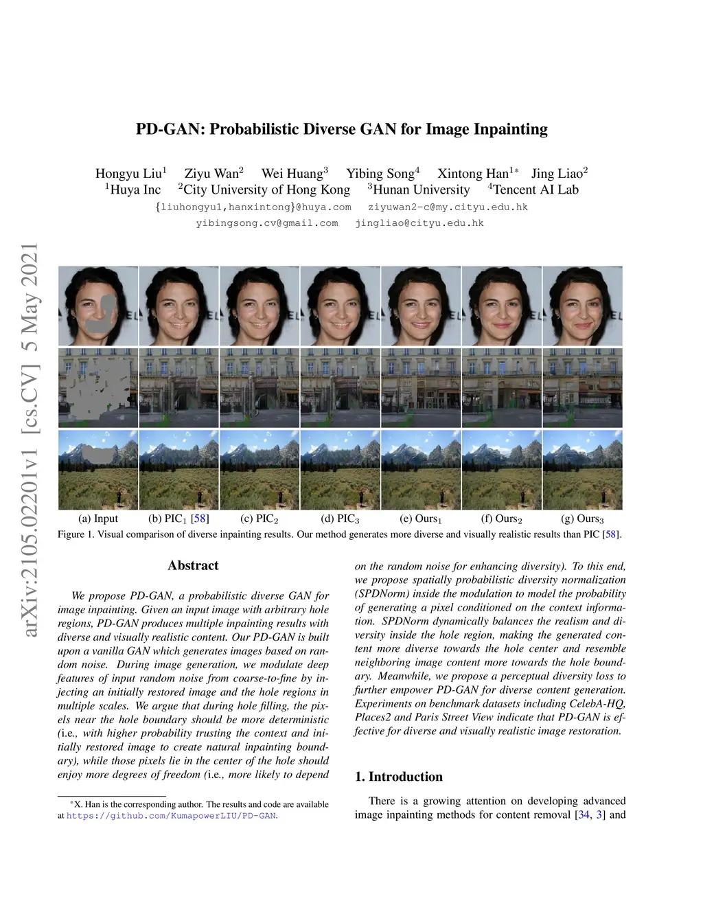 PD-GAN: Probabilistic Diverse GAN for Image Inpainting