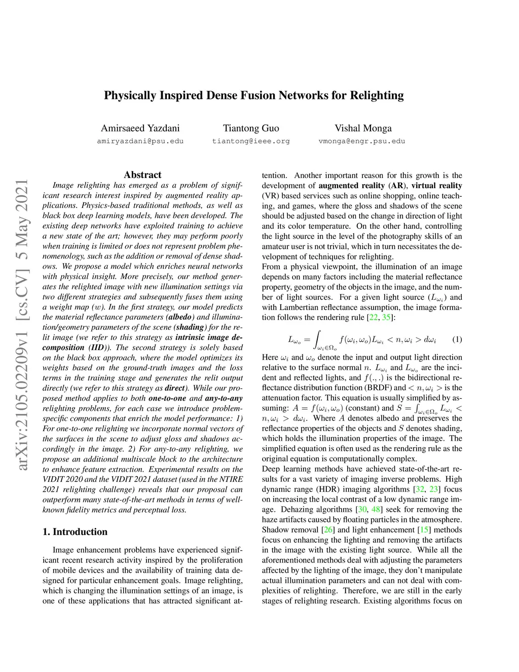 Physically Inspired Dense Fusion Networks for Relighting