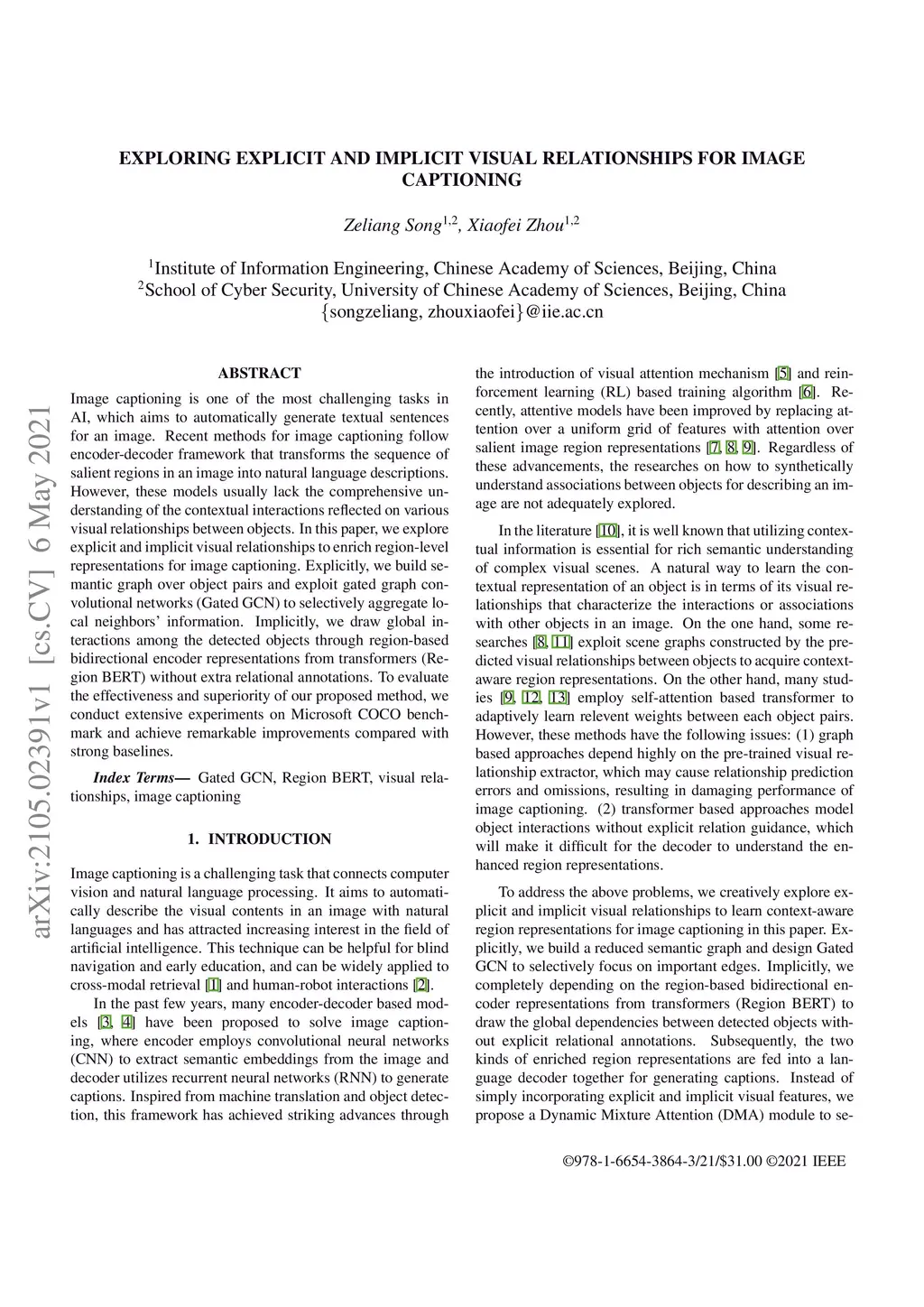 Image captioning is one of the most challenging tasks in AI, which aims to automatically generate textual sentences for an image. Recent methods for image captioning follow encoder-decoder framework that transforms the sequence of salient regions in an image into natural language descriptions. However, these models usually lack the comprehensive understanding of the contextual interactions reflected on various visual relationships between objects. In this paper, we explore explicit and implicit visual relationships to enrich region-level representations for image captioning. Explicitly, we build semantic graph over object pairs and exploit gated graph convolutional networks (Gated GCN) to selectively aggregate local neighbors' information. Implicitly, we draw global interactions among the detected objects through region-based bidirectional encoder representations from transformers (Region BERT) without extra relational annotations. To evaluate the effectiveness and superiority of our proposed method, we conduct extensive experiments on Microsoft COCO benchmark and achieve remarkable improvements compared with strong baselines.
