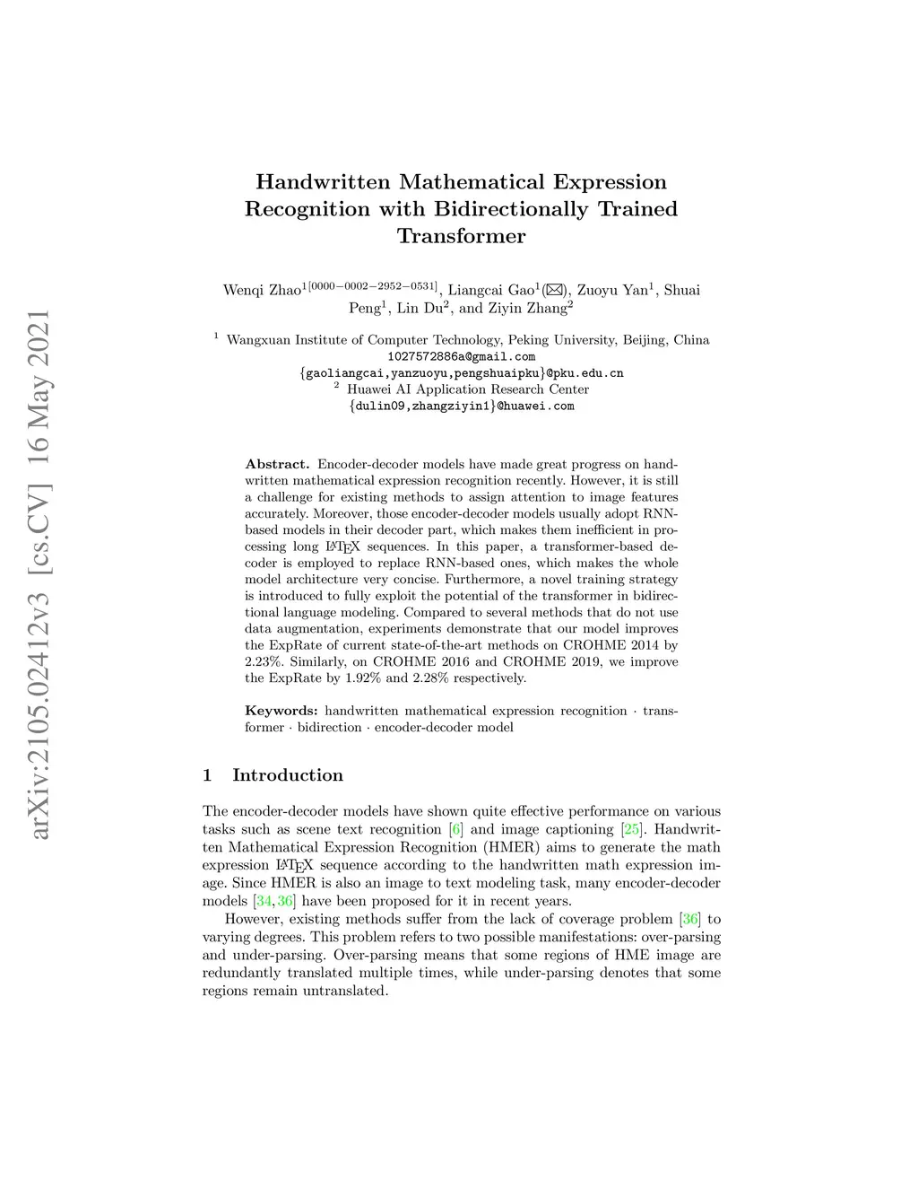 Handwritten Mathematical Expression Recognition with Bidirectionally