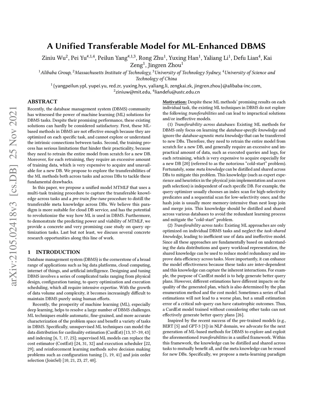 A Unified Transferable Model for ML-Enhanced DBMS