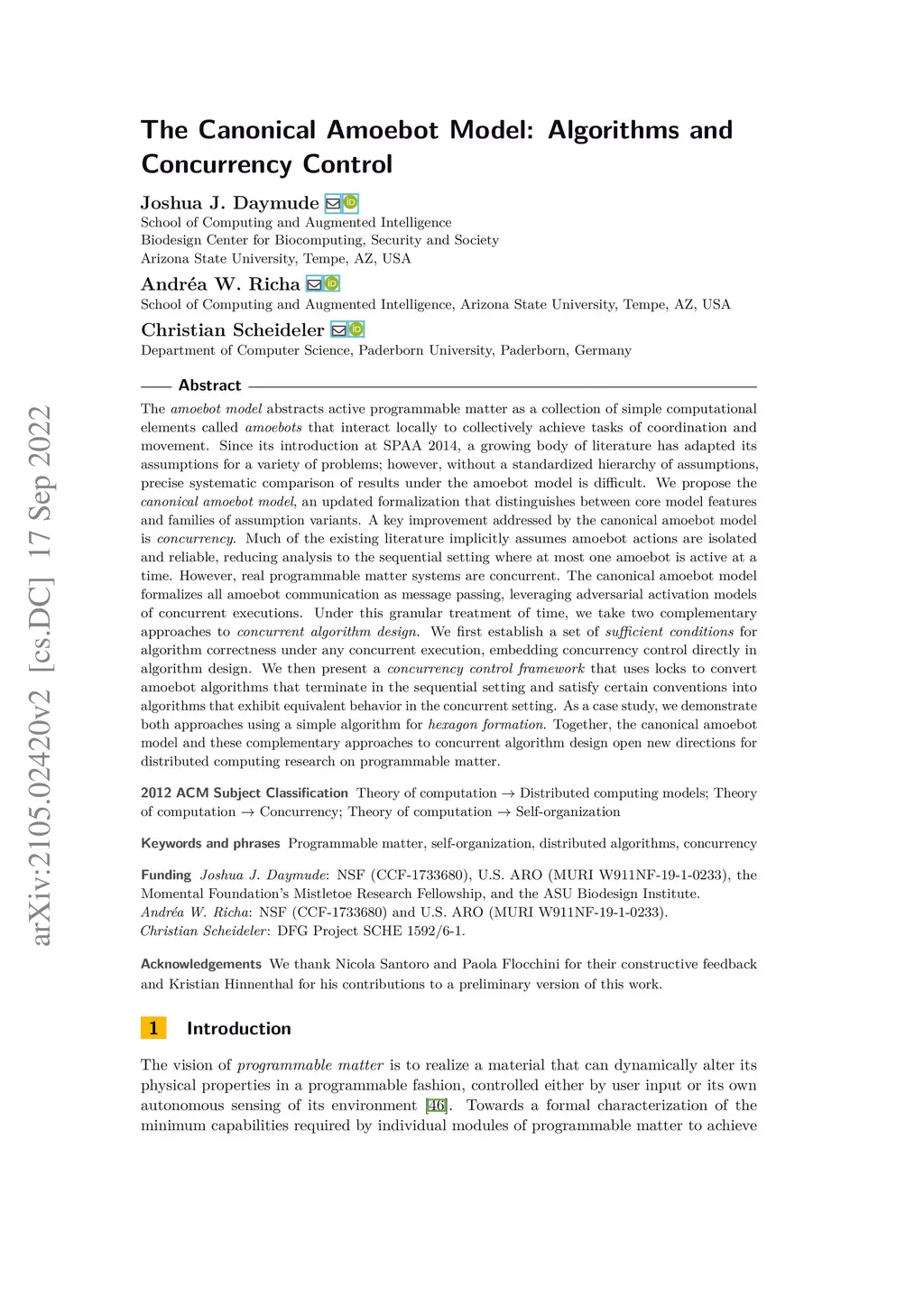 The Canonical Amoebot Model: Algorithms and Concurrency Control