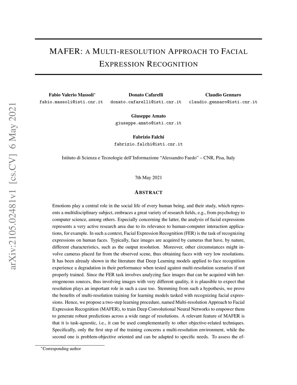 MAFER: a Multi-resolution Approach to Facial Expression Recognition