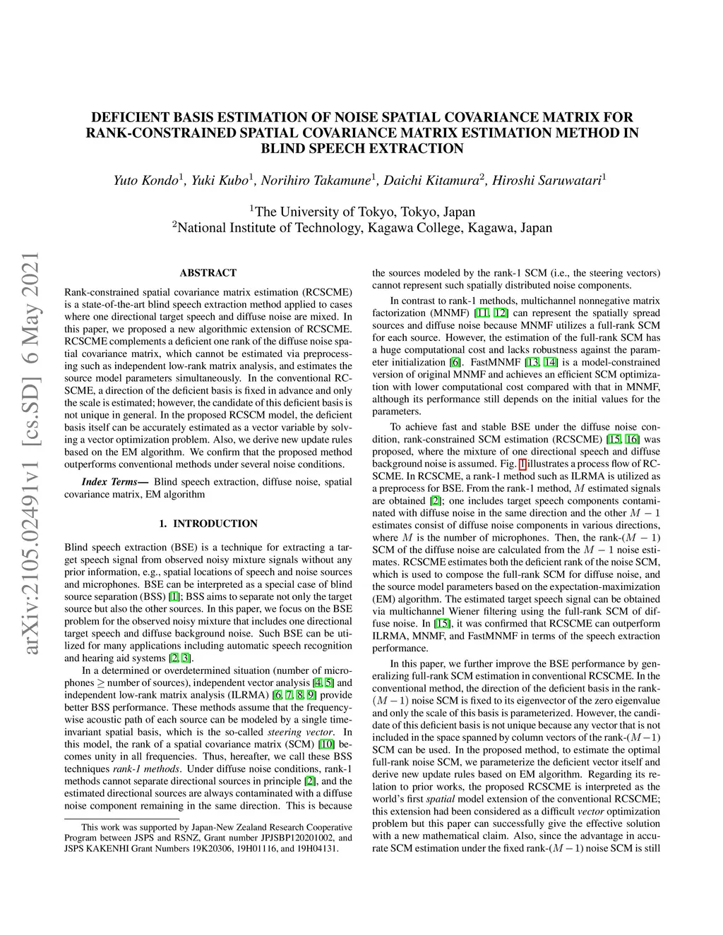 Rank-Constrained Spatial Covariance Matrix Estimation Method in Blind Speech