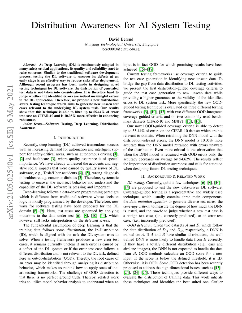 Distribution Awareness for AI System Testing