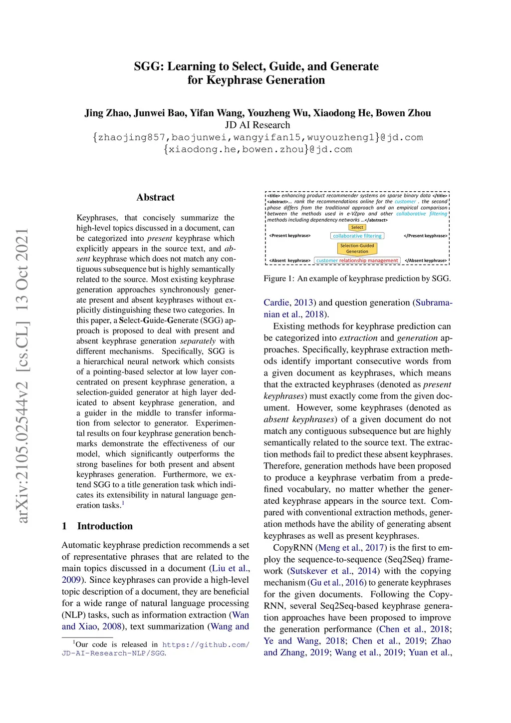SGG: Learning to Select, Guide, and Generate for Keyphrase Generation