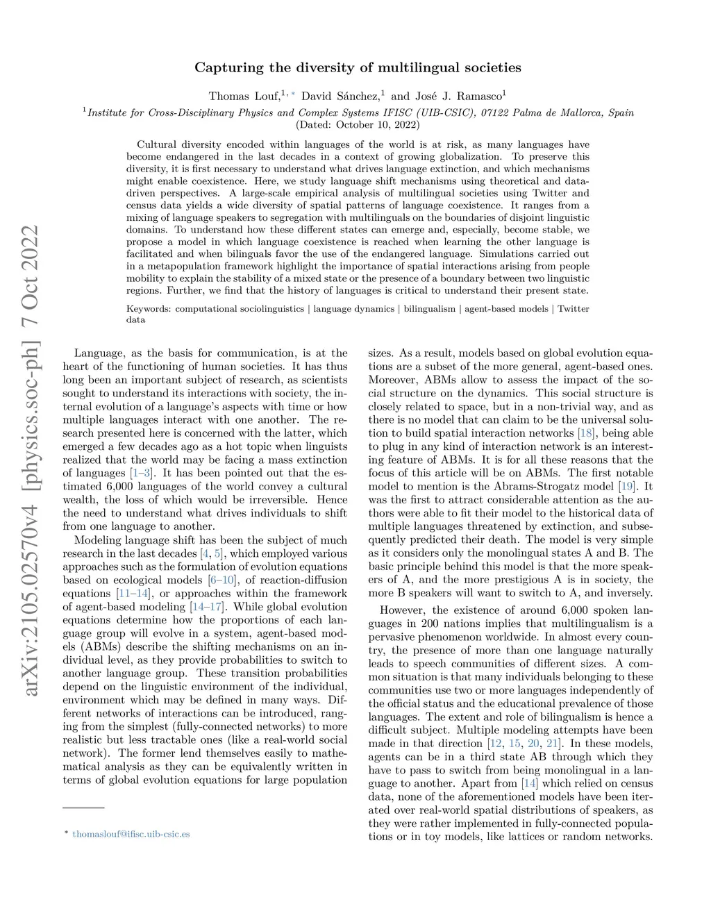 Capturing the diversity of multilingual societies