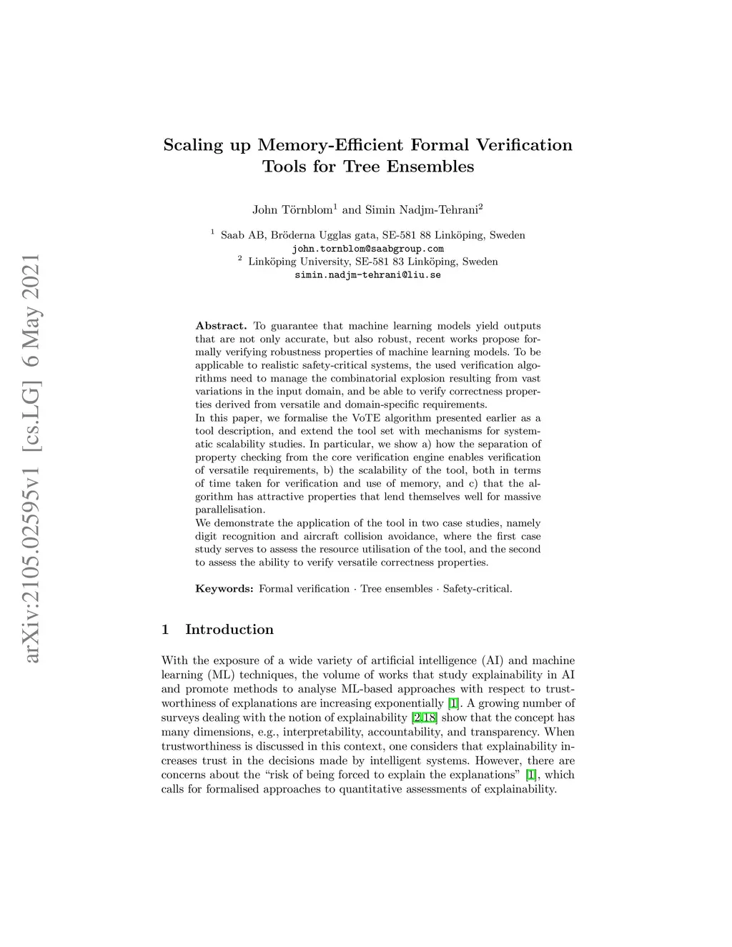Scaling up Memory-Efficient Formal Verification Tools for Tree Ensembles