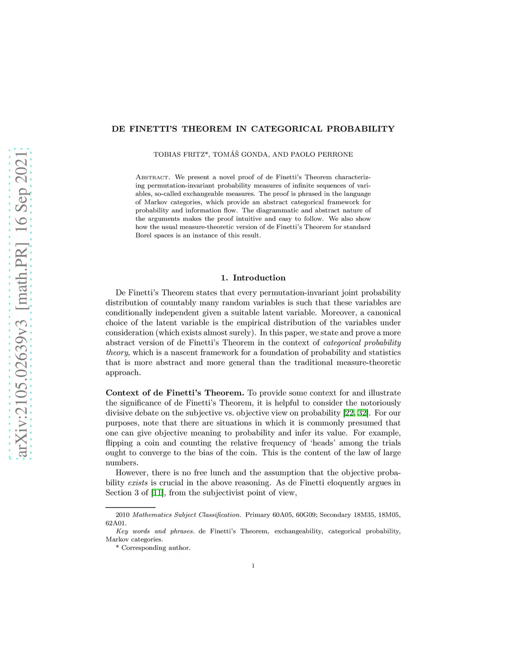 De Finetti's Theorem in Categorical Probability