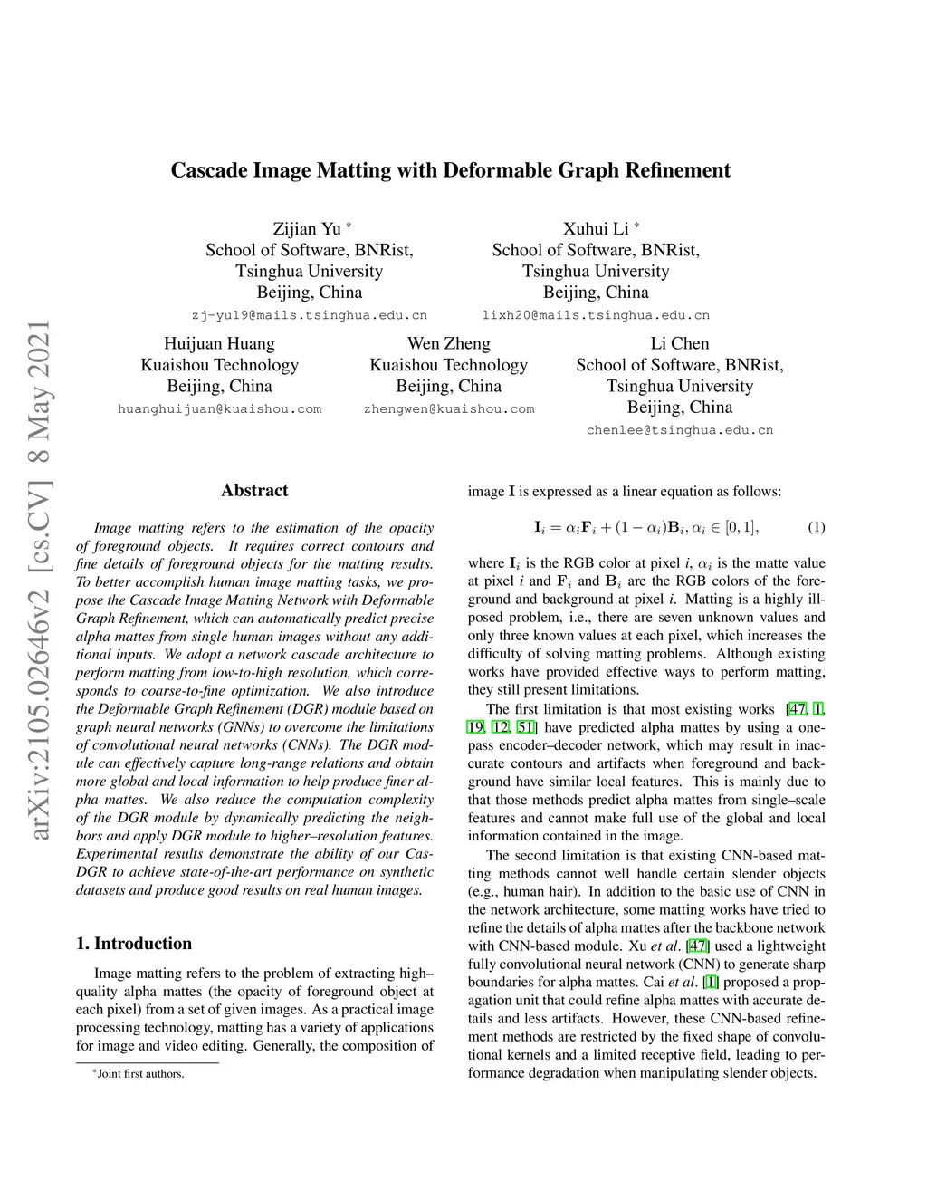 Cascade Image Matting with Deformable Graph Refinement