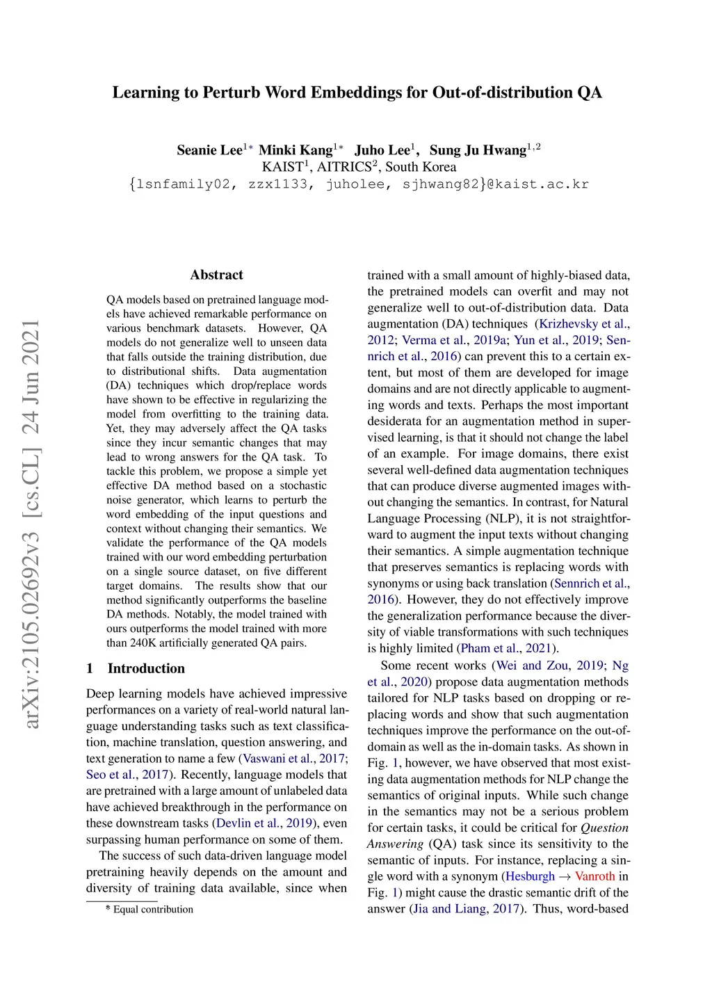 Learning to Perturb Word Embeddings for Out-of-distribution QA