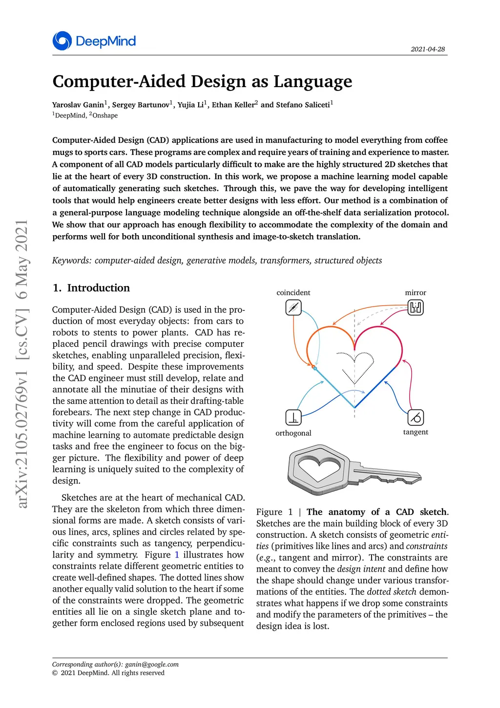 Computer-Aided Design (CAD) applications are used in manufacturing to model everything from coffee mugs to sports cars. These programs are complex and require years of training and experience to master. A component of all CAD models particularly difficult to make are the highly structured 2D sketches that lie at the heart of every 3D construction. In this work, we propose a machine learning model capable of automatically generating such sketches. Through this, we pave the way for developing intelligent tools that would help engineers create better designs with less effort. Our method is a combination of a general-purpose language modeling technique alongside an off-the-shelf data serialization protocol. We show that our approach has enough flexibility to accommodate the complexity of the domain and performs well for both unconditional synthesis and image-to-sketch translation.