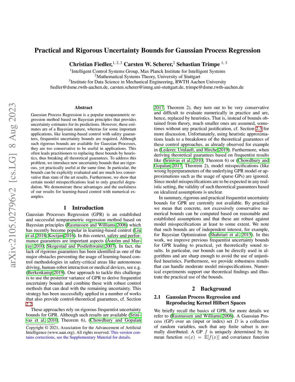 Gaussian Process Regression is a popular nonparametric regression method based on Bayesian principles that provides uncertainty estimates for its predictions. However, these estimates are of a Bayesian nature, whereas for some important applications, like learning-based control with safety guarantees, frequentist uncertainty bounds are required. Although such rigorous bounds are available for Gaussian Processes, they are too conservative to be useful in applications. This often leads practitioners to replacing these bounds by heuristics, thus breaking all theoretical guarantees. To address this problem, we introduce new uncertainty bounds that are rigorous, yet practically useful at the same time. In particular, the bounds can be explicitly evaluated and are much less conservative than state of the art results. Furthermore, we show that certain model misspecifications lead to only graceful degradation. We demonstrate these advantages and the usefulness of our results for learning-based control with numerical examples.