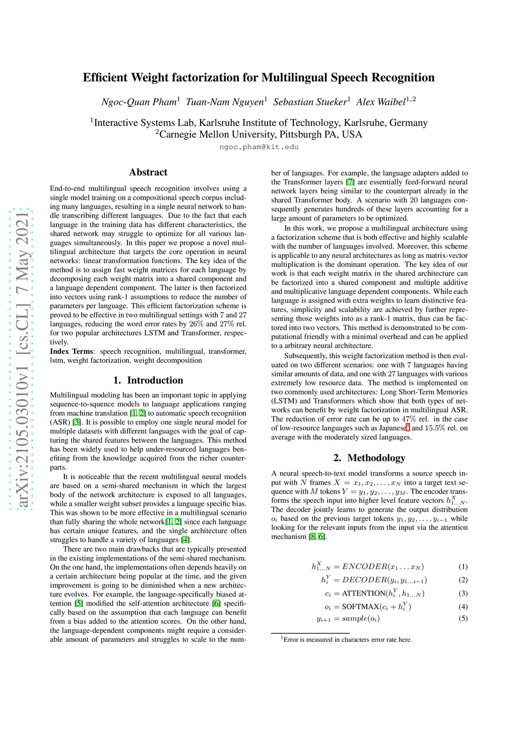 Efficient Weight factorization for Multilingual Speech Recognition